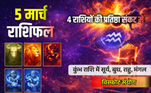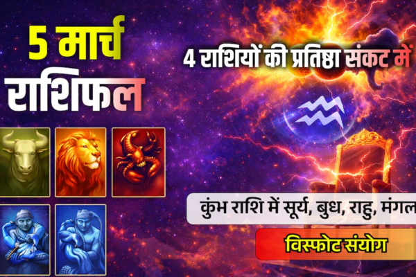 5 मार्च 2026, गुरुवार को कुंभ राशि में सूर्य, बुध, राहू और मंगल की दुर्लभ ‘चतुर्ग्रही युति’ बन रही है. ज्योतिषीय गणना के अनुसार, जब सत्ता का कारक सूर्य, बुद्धि का बुध, साहस का मंगल और भ्रम का राहू एक साथ मिलते हैं, तो यह पद, प्रतिष्ठा और करियर में बड़े उलटफेर का संकेत देता…