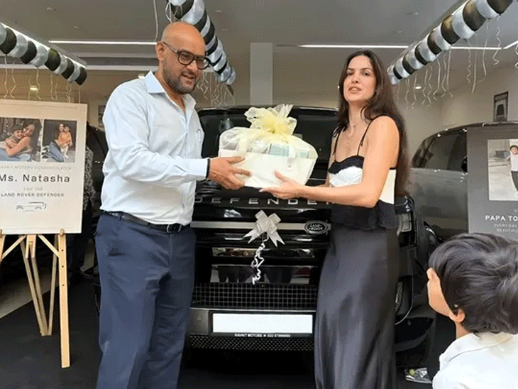 हार्दिक ने एक्स-वाइफ और बेटे को गिफ्ट की लग्जरी कार:नताशा और अगस्त्य डिफेंडर की डिलीवरी लेते दिखे, कीमत लगभग 4 करोड़ रुपए