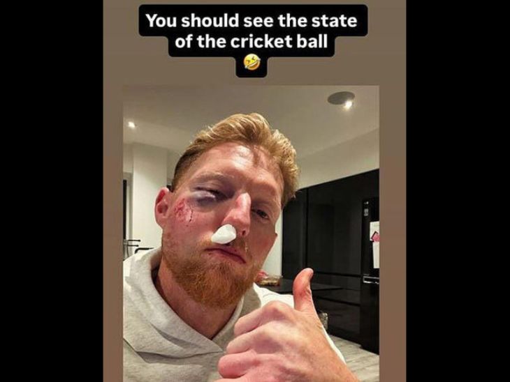 बेन स्टोक्स को चेहरे पर गेंद लगी:दाईं आंख सूजी, नाक भी चोटिल; सोशल मीडिया पर डरावनी फोटो शेयर की