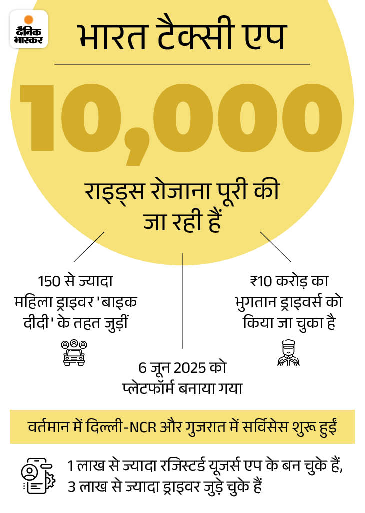 केंद्र सरकार की सहकारी सर्विस ‘भारत टैक्सी’ जनवरी 2026 से दिल्ली और गुजरात में शुरू हो सकती है। यह छह महीने बाद मुंबई, पुणे में शुरू होगी। सहकारी टैक्सी का ट्रायल डेढ़ महीने पहले दिल्ली और गुजरात के राजकोट में शुरू हुआ था, जो सफल रहा है।