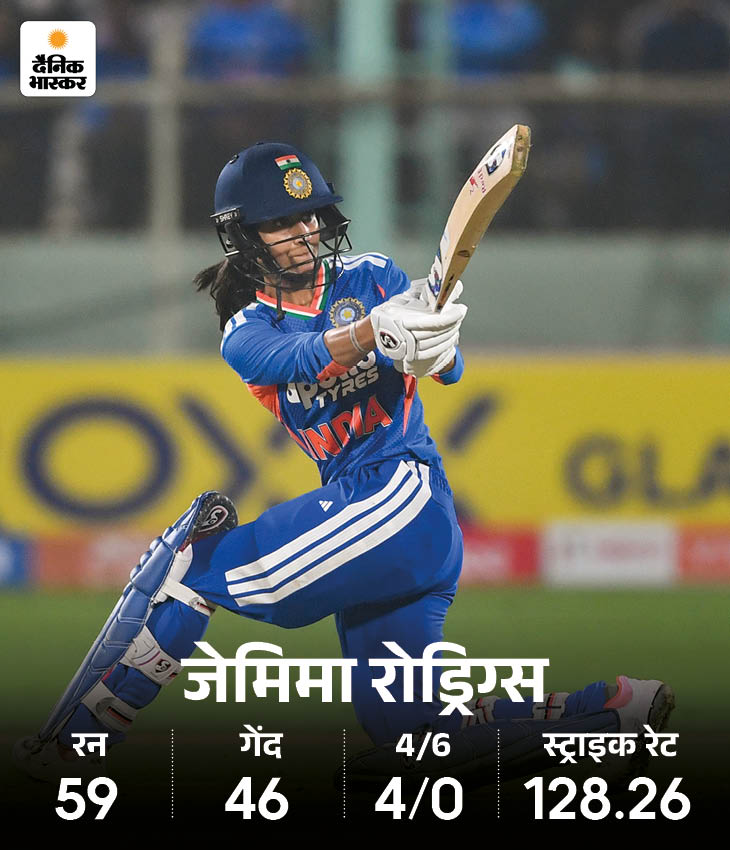 तीसरे मैच में टीम इंडिया ने टॅास जीतने के बाद पहले बल्लेबाजी करने का फैसला लिया था। टीम ने 20 ओवर में 6 विकेट के नुकसान पर 176 रनों का स्कोर बनाया था। टीम इंडिया की तरफ से बल्लेबाजी में स्मृति मंधाना और जेमिमा रोड्रिग्स का कमाल देखने को मिला।