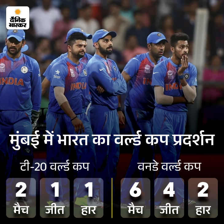 वानखेड़े स्टेडियम में भारत तीसरी बार ही टी-20 वर्ल्ड कप का मैच खेलेगा। 2016 में टीम वेस्टइंडीज से हारी, वहीं 2026 में टीम ने अमेरिका को 29 रन के करीबी अंतर से हराया। वनडे वर्ल्ड कप में भारत यहां 6 मैच खेल चुका है, 4 में टीम को जीत और महज 2 में हार मिली। हालांकि, एक हार इंग्लैंड के खिलाफ ही रही।